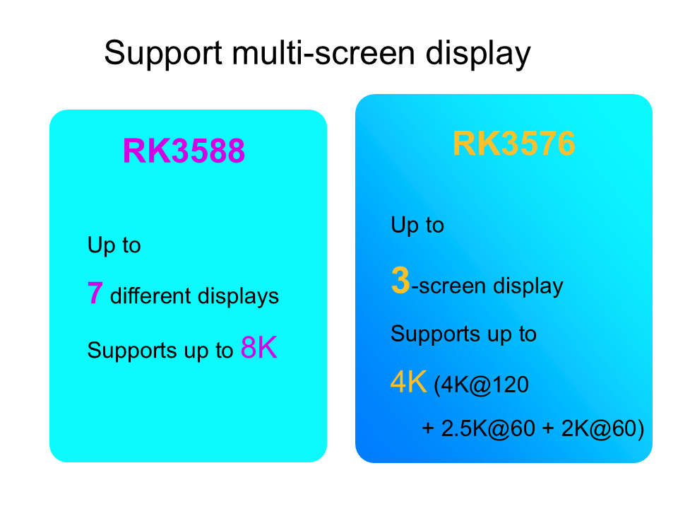 RK3588 और RK3576 दोनों कई स्क्रीन और विभिन्न सामान्य डिस्प्ले इंटरफेस का समर्थन करते हैं।
