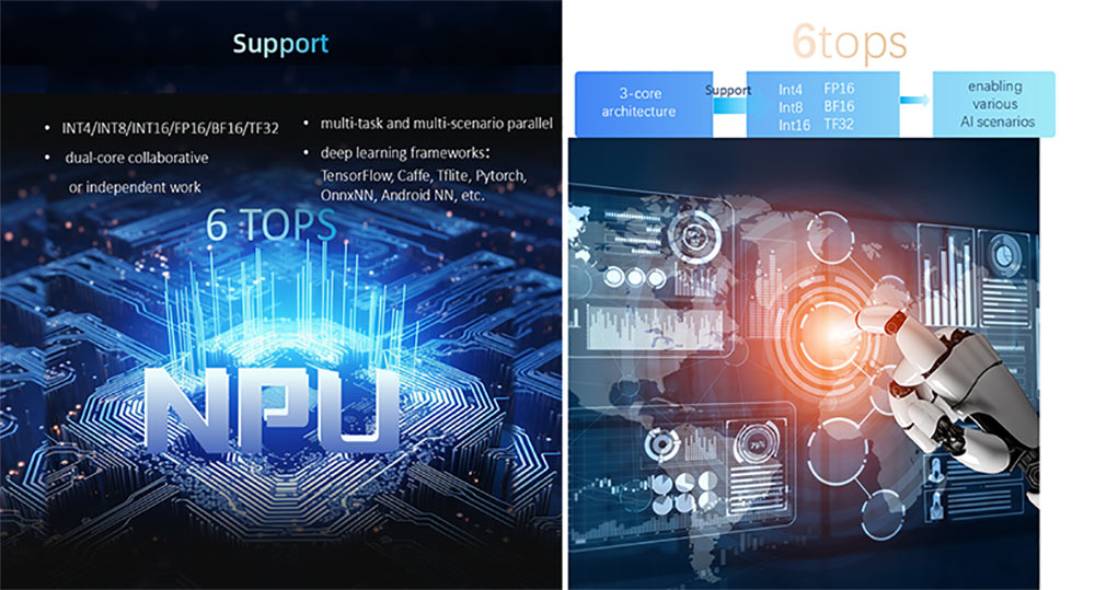 4। एज एआई: एकीकृत 6 टॉप्स एनपीयू डेवलपर्स को चेहरे की पहचान प्रणाली और स्मार्ट सेंसर जैसे कम विलंबता एआई अनुप्रयोगों का निर्माण करने में सक्षम बनाता है।