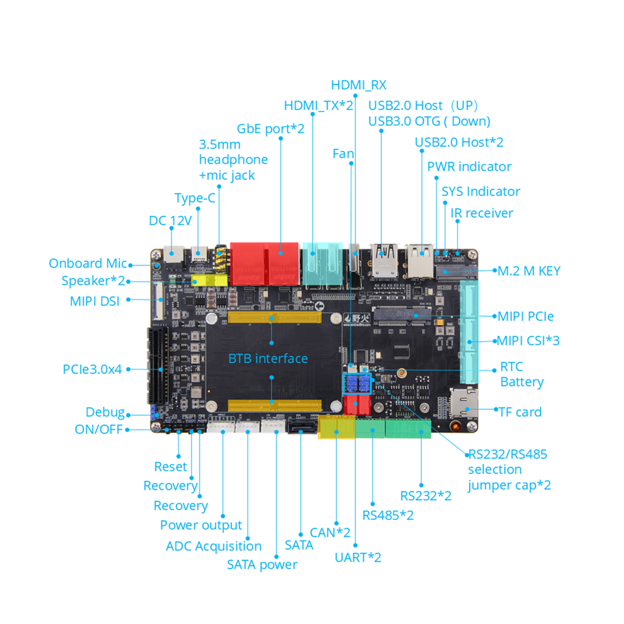 • आरके3588 एसबीसी लाभ: रास्पबेरी पाई उत्पादों की तुलना में, आरके3588 विकास बोर्ड बेहतर प्रदर्शन, समृद्ध इंटरफेस और अधिक शक्तिशाली मल्टीमीडिया प्रसंस्करण क्षमताएं प्रदान करता है, जो इसे एआई और औद्योगिक अनुप्रयोगों के लिए अधिक उपयुक्त बनाता है।