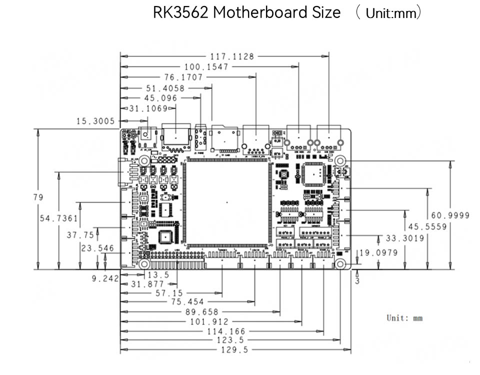 मॉडल: RK3562/RK3562JCPU: क्वाड-कोर कॉर्टेक्स-ए 53, मुख्य आवृत्ति 2.0GHZGPU तक: MALI-G52NPU: 1TOPS कंप्यूटिंग पावर (NPU के बिना औद्योगिक-ग्रेड RK3562J)